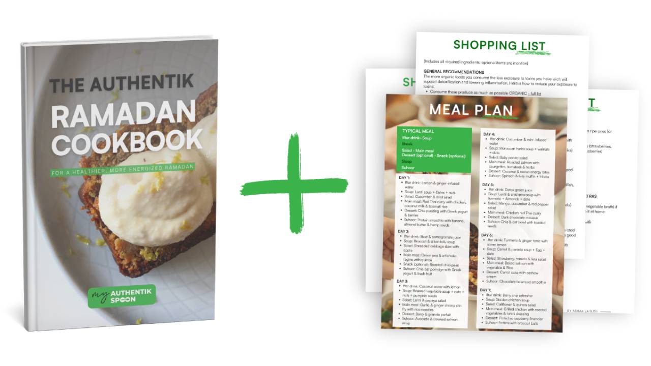 The Authentik Ramadan Cookbook is a 150-page recipe collection featuring 60+ delicious recipes that support a balanced, nutritious lifestyle—whether you’re fasting or not. From savory main meals to sweet (yet healthy) treats, each page offers practical guidance and mouthwatering inspiration to help you maintain energy, improve digestion, and build lasting healthy habits.